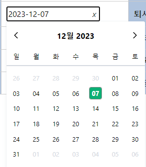 신규 눌렀을 때 오늘 날짜로 조회가 되는 Datepicker가 완성됩니다.