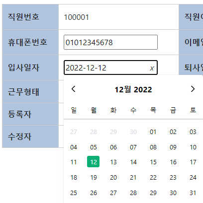 이렇게 하면 조회 눌렀을 때 조회된 날짜로 캘린더 날짜가 나오고,